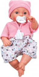 Il set include un ciuccio con catenella che può essere attaccato all'abbigliamento, aggiungendo autenticità al gioco. La bambola è realizzata in materiale plastico resistente, è leggera, pratica e piacevole al tatto - ideale per il gioco quotidiano, coccole e anche per il viaggio.