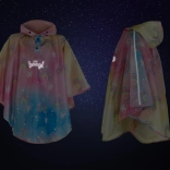 Il taglio studiato consente di indossare il poncho sopra lo zaino o la cartella, così gli oggetti dei bambini rimangono asciutti. Gli elementi riflettenti aumentano la visibilità con poca luce e pioggia, e il pratico sacchetto con coulisse è abbinato al motivo del poncho: ideale per viaggi, scuola e attività.