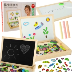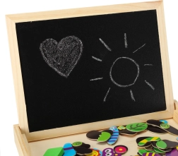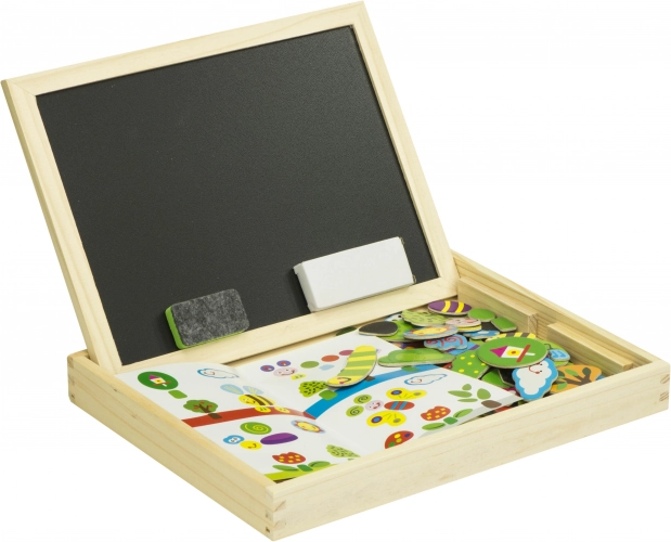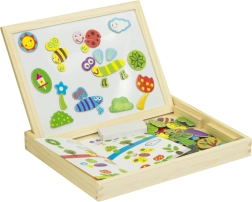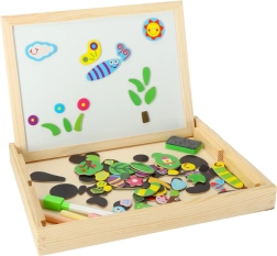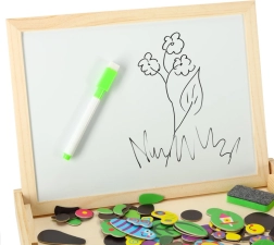 - Un lato bianco magnetico per disporre puzzle colorati e scrivere con il marcatore.