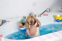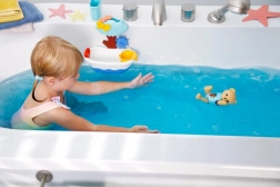 Fissa facilmente la base su una superficie liscia della vasca o della parete della doccia. Il giocattolo resta stabile ed è sempre a portata di mano.