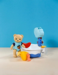 Rendi il bagnetto più divertente con una dolce vaschetta e l'orsetto Teddy. Il set interattivo offre una ruota ad acqua rotante, una doccia ad albero con nuvoletta, una tazzina per versare l’acqua e ventose per un facile fissaggio alla vasca o alla parete della doccia. L’orsetto alto 15 cm ha un costumino da bagno stampato ed è ideale per le piccole mani dei bambini.