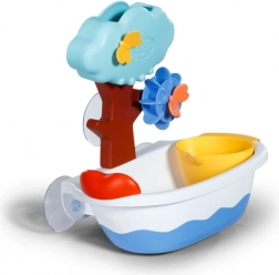 Questo allegro set da bagno trasforma ogni lavaggio in un’avventura acquatica divertente. I bambini possono riempire la tazzina, versare l’acqua nella doccia ad albero e osservare come la ruota ad acqua si mette a girare. Grazie alle ventose, la base rimane stabile su superfici lisce della vasca o delle piastrelle.