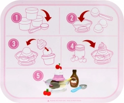 Include una speciale sabbia modellabile per formare facilmente le palline, una scheda ricetta per imparare i passaggi step-by-step e una ricca dotazione di accessori per una preparazione del gelato realistica nella cucina dei bambini.