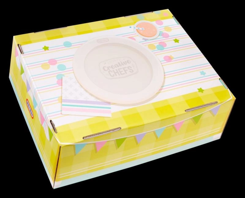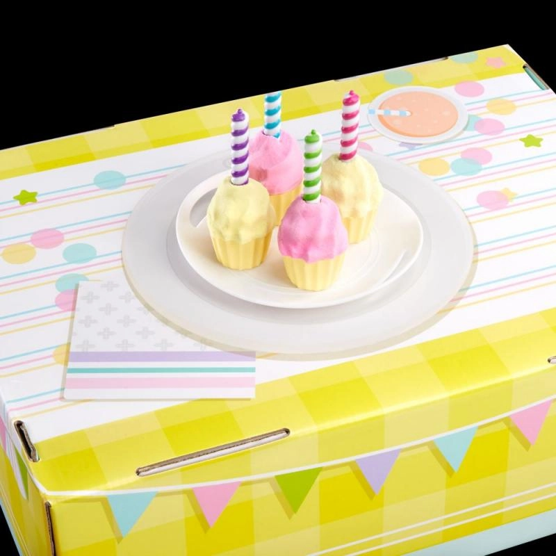 • Accessori realistici – misurino con tacche, spatola, stampo per muffin, decorazioni e vassoio da portata.