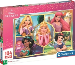 Il puzzle "Principesse Disney Super 104" della Clementoni è progettato per bambini dai 6 anni in su. Questo puzzle originale ha 104 pezzi e una volta completato misura 48,5 x 33,5 cm, offrendo una grande dimensione per giocare ed esporre.