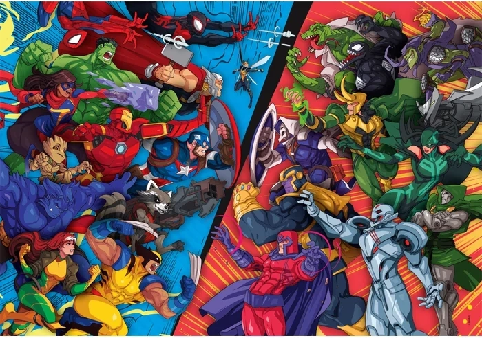 Goditi un divertimento avvincente con il puzzle CLEMENTONI con tema AVENGERS contro i cattivi. Il set include 104 pezzi e, una volta completato, crea un'immagine di 48,5 × 33,5 cm – ideale per i fan dei supereroi e per sviluppare pazienza, concentrazione e motricità fine.