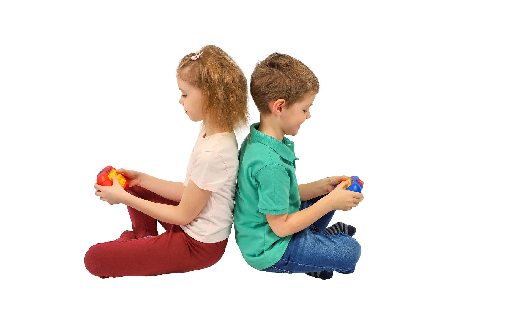Il corpo compatto si adatta perfettamente alla mano dei bambini. Le bolle in silicone offrono un feedback tattile coinvolgente che rilassa e sostiene la motricità fine.