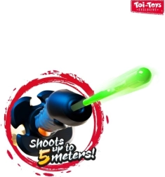 I dardi si ripongono nell'impugnatura della spada e si possono lanciare tramite un pulsante – per un gioco sicuro ma avvincente con una gittata fino a 5 metri.