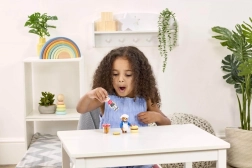 Le figurine e gli accessori da cucina stimolano creatività, comunicazione e lo sviluppo della motricità fine.