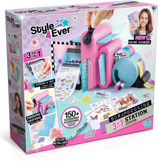 Scopri la stazione creativa universale STYLE 4 EVER, con cui i bambini realizzano facilmente adesivi, motivi in rilievo (embossing) e nastri washi decorativi. La macchina manuale, oltre 150 accessori e un pratico taccuino favoriscono fantasia, motricità fine e gioia nella creazione.
