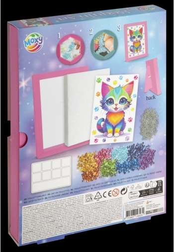 Scopri un’attività artistica divertente per bambini: creare immagini di animaletti seguendo i numeri. Il set è progettato per rendere la creazione semplice e intuitiva – i bambini seguono i numeri e posizionano i dischetti colorati con i piccoli spilli sulla base. L’immagine finita può essere inserita nella cornice di cartone inclusa.
