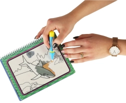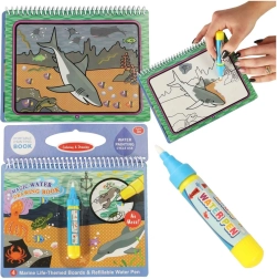 Questo libro da colorare ad acqua riutilizzabile offrirà ore di divertimento ai bambini. Grazie alla magica penna ad acqua, a contatto con l’acqua compaiono colori vivaci e dettagli nascosti del mondo sottomarino. Una volta asciutto, il disegno svanisce e il bambino può colorare ancora e ancora.