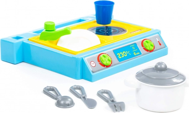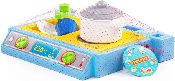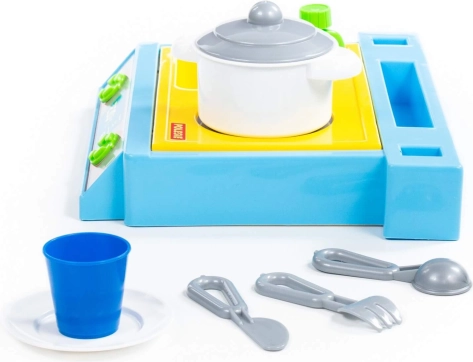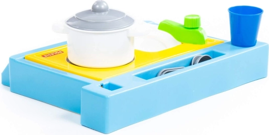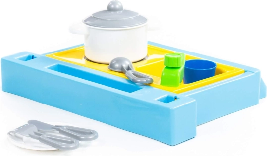 Piccolo set da tavolo con lavello, fornello e set di stoviglie