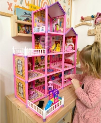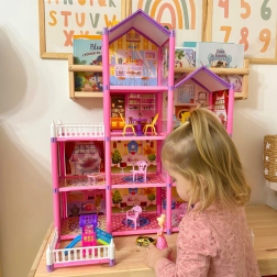 Scopri un mondo di fantasia con la casetta per bambole WOOPIE Lovely House. Questa villa spaziosa e multipiano offre varie stanze, balconi e tetti che invitano a scene realistiche di vita familiare. I bambini si divertiranno sia con la costruzione sia con il successivo arredo degli interni grazie ai mobili e agli accessori dettagliati.