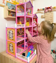 Il set comprende 194 pezzi, inclusi elementi per il montaggio fai-da-te, mobili, decorazioni e figurine. La casetta è realizzata con materiali sicuri, resistenti e colorati, ideali per bambini dai 3 anni in su e perfetti per lunghe ore di gioco.