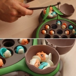 Parti per una pesca preistorica con un gioco che coinvolge subito i bambini. La piattaforma rotonda ruota e le bocche dei dinosauri si aprono e chiudono ritmicamente – l’obiettivo è catturarle al momento giusto con la canna magnetica. Il gioco sviluppa pazienza, prontezza e collaborazione tra bambini e adulti.