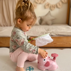 Il design accattivante dell’elefante rosa motiva i bambini a giocare e ad allenare la coordinazione ogni giorno.