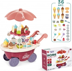 Questo giocattolo simula il ruolo di venditore e acquirente, aiutando a sviluppare abilità sociali e consapevolezza. Il carrello include molti accessori di qualità e adesivi per giocare e vendere gelati e dolciumi. Il giocattolo consente l'apprendimento di competenze matematiche e finanziarie di base attraverso acquisti simulati con l'utilizzo di monete fornite.