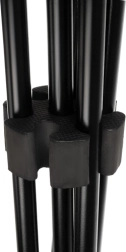 Tubi in acciaio verniciati a polvere, cavi di tensione e picchetti mantengono la rete salda in posizione anche durante il gioco dinamico. I terminali antiscivolo proteggono la superficie e aumentano la stabilità.