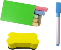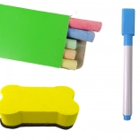 - Pennarello con magnete e gomma, 5 gessetti colorati, spugnetta
