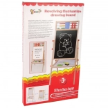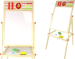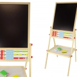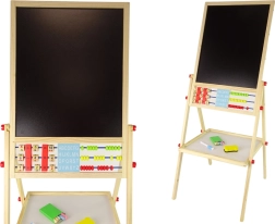 La lavagna in legno a doppia faccia è un gioco educativo ideale per bambini dai 3 anni. La struttura stabile con gambe garantisce un gioco sicuro. La combinazione di due superfici, una a gesso e l’altra magnetica, offre molte possibilità di gioco: