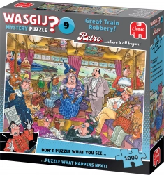 Scopri il puzzle unico JUMBO WASGIJ che capovolge il modo di comporre. L’immagine finale non è identica al motivo sulla scatola: componi la scena da un altro punto di vista. Ti aspetta un rompicapo intelligente, un concetto originale e 1000 pezzi pieni di umorismo, logica e tensione nello stile della grande rapina al treno.