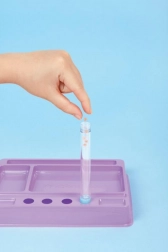 Imbuto, 3 corpi penna, tappi, glitter e iconcine decorative. Il riempimento è pulito e semplice grazie al vassoio. Acqua non inclusa.