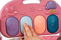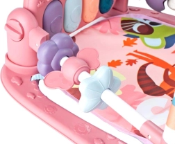 Questo tappetino gioco educativo rosa crea uno spazio sicuro e stimolante per il gioco quotidiano. L’arco colorato con giochini sospesi incoraggia il bambino ad allungarsi e afferrare, favorendo la coordinazione mano–occhio. Il pianolino interattivo con tasti retroilluminati offre 3 modalità sonore – note della scala Do–Re–Mi–Fa, suoni brevi (ad es. risatina del bebè) e melodie più lunghe – contribuendo allo sviluppo dell’udito e del senso del ritmo.