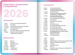 Elegante agenda scolastica rosa per il periodo settembre 2025 fino a dicembre 2026, ideale per tutti gli studenti. Offre molte funzioni utili e informazioni che aiutano a mantenere l'organizzazione durante l'intero anno scolastico.