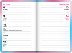 - Calendario settimanale a righe in lingua ceca con nomi e festivite.