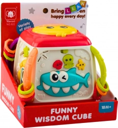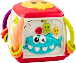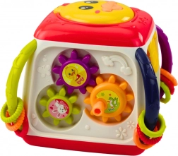 Il cubo include elementi interattivi come tasti musicali e ingranaggi rotanti, che offrono al bambino ore di divertimento e stimolazione.