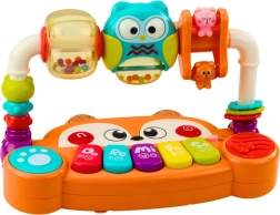 Il pianoforte include un gufo rotante con palline all'interno, nonché pendenti a scorrimento e rotazione che supportano lo sviluppo delle capacità motorie fini, la coordinazione mano-occhio e le abilità manuali. Diverse texture e colori stimolano la curiosità e incoraggiano l'esplorazione indipendente.