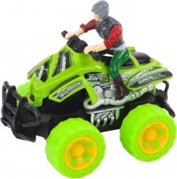 Il set comprende non solo un robusto quad con gabbia collegabile, ma anche una figura dell’autista con casco protettivo e una figura di dinosauro, che insieme creano una scenetta coerente pronta per giocare subito dopo l’apertura.
