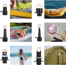 La pompa elettrica Trizand è dotata di sei ugelli intercambiabili per diversi dispositivi acquatici, inclusi paddleboard, kayak e altre imbarcazioni. Con essa, gonfierai rapidamente la tua attrezzatura senza sforzo grazie a una portata fino a 350 l/min e una pressione massima di 20 PSI.