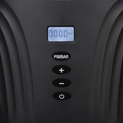 L'alimentazione dall'accendisigari da 12V dell'auto rende questa pompa molto portatile e ideale per l'uso in spiaggia, campeggio o durante altre attività all'aperto. Il display LCD e i pulsanti per la regolazione della pressione assicurano impostazioni intuitive e precise.