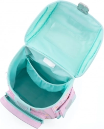 Un ampio scomparto contiene libri e quaderni per la 1ª–2ª classe, mentre la tasca frontale è ideale per la merenda e gli oggetti piccoli. Il fondo rigido protegge il contenuto da ribaltamenti e cadute, mentre la fibbia di sicurezza in metallo con inserto riflettente e altri elementi riflettenti aumentano la visibilità del bambino al crepuscolo. Pratici ganci aggiuntivi consentono un migliore fissaggio degli spallacci e l’adattamento della cartella sulla schiena.