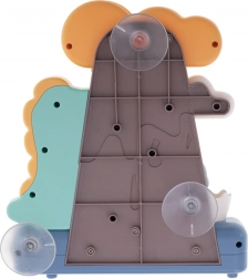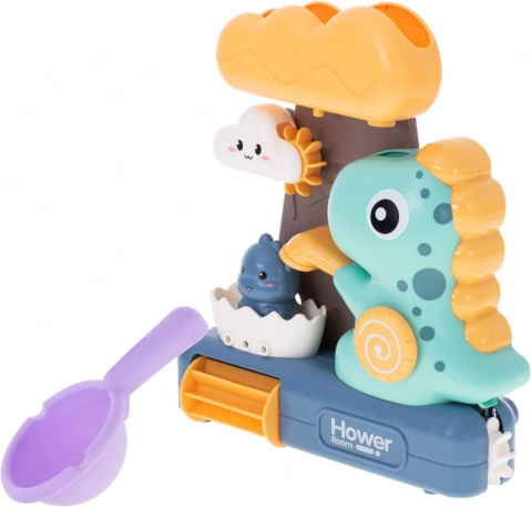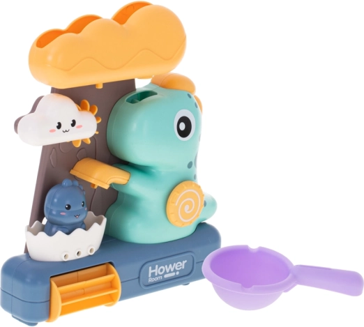 I protagonisti principali del giocattolo sono dinosauri colorati e una nuvola sorridente, che trasformano ogni bagno in pura gioia. Il giocattolo stimola la creatività e l'immaginazione dei bambini e sviluppa il pensiero logico. Il bambino può osservare come l'acqua versata in un punto scorra attraverso un altro foro e metta in movimento tutte le parti del giocattolo.