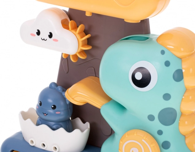Il giocattolo da bagno per bambini con dinosauri e ruota d'acqua è un modo eccezionale per rendere più vivace il bagno dei più piccoli. Il gioco consiste nel versare acqua nel contenitore superiore a forma di grande nuvola, da dove l'acqua scorre naturalmente attraverso tutte le parti del giocattolo, assicurando divertimento visivo per i bambini.