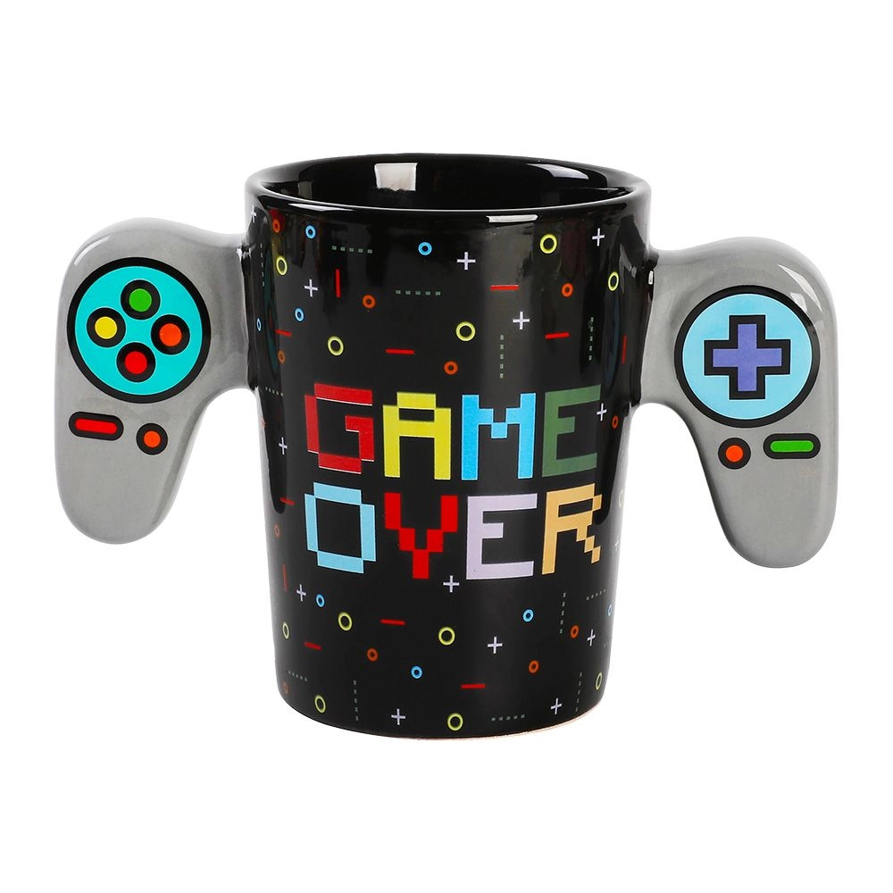 Goditi la tua bevanda preferita con un tocco di nostalgia videoludica. Questa tazza in ceramica nera con motivo GAME OVER offre un design insolito con due manici a forma di controller e pulsanti colorati. L’aspetto divertente è completato da una presa confortevole e da dimensioni pratiche per l’uso quotidiano.