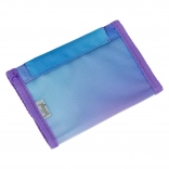 Il portafoglio è realizzato in robusto tessuto riciclato, adatto all’uso quotidiano a scuola e in viaggio.