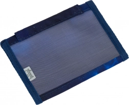 Il portafoglio è realizzato in tessuto riciclato con bordi rinforzati per una maggiore durata. Il laccetto regolabile con fibbia di sicurezza consente un trasporto comodo e sicuro al collo, mentre la chiusura a strappo rende facile e veloce aprire e chiudere.