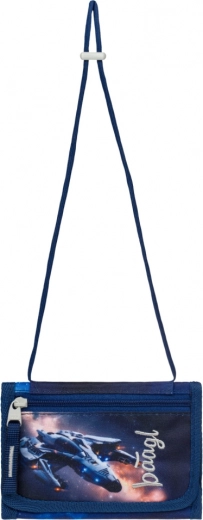 Pratico portafoglio da collo per bambini con motivo di astronave del brand BAAGL, offre portabilità sicura, spazio sufficiente per monete e carte e una struttura resistente in materiali riciclati. Grazie al laccetto regolabile con fibbia di sicurezza e alla chiusura a strappo è ideale per l’uso quotidiano a scuola e per le attività extrascolastiche.