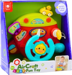 Cruscotto interattivo dell'aereo ha tutto ciò di cui il vostro piccolo pilota ha bisogno – volante, chiave, pulsanti funzionanti, leva per il cambio di direzione e una mini chiave. Premendo i pulsanti, il giocattolo emette suoni gioiosi, melodie e effetti luminosi, che supportano lo sviluppo sensoriale del bambino.
