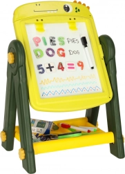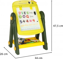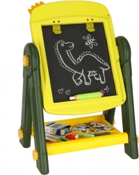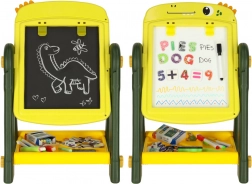 Questa lavagna educativa bifacciale è uno strumento ideale per sviluppare creatività e apprendimento nei bambini. Da un lato presenta una superficie bianca magnetica che consente di disegnare e scrivere con pennarelli cancellabili a secco, mentre l’altro lato funge da classica lavagna nera per disegnare con il gesso. Decorata con un allegro motivo di dinosauri, affascina ogni bambino con i suoi colori e le sue possibilità d’uso.
