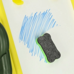 Un lato per scrivere con i pennarelli e l’altro per disegnare con il gesso, offrendo maggiori possibilità creative.