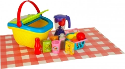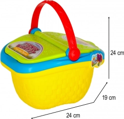 Questo colorato cestino da picnic offre tutto ciò di cui i bambini hanno bisogno per giocare ai loro picnic preferiti. Il coperchio apribile e il materiale resistente assicurano un facile accesso e una lunga durata del cestino.