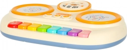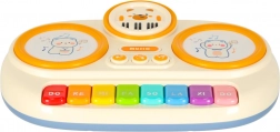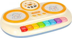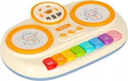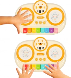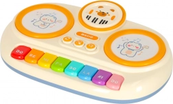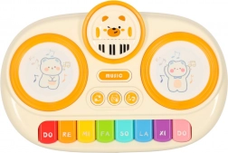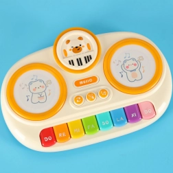 Il pianoforte interattivo per bambini in colore beige offre sei diverse modalità sonore, dieci melodie allegre e una modalità DJ per un divertimento creativo con il suono.