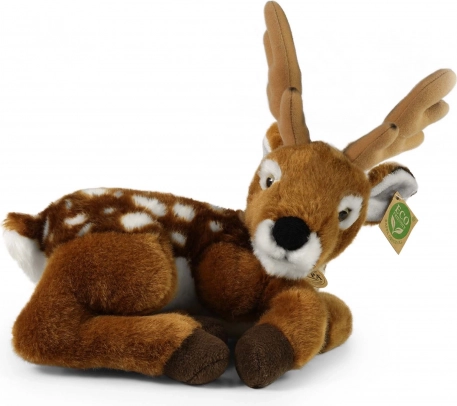 Questo cervo di peluche della collezione RAPPA colpisce per i dettagli realistici, i palchi morbidi e il pelo soffice con macchiette bianche. È ideale per coccole, gioco e anche come elemento decorativo nella cameretta. L’imbottitura da bottiglie PET riciclate è sicura, al tatto indistinguibile da quella comune e completamente certificata anche per i più piccoli.