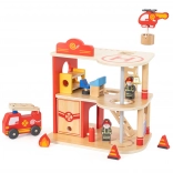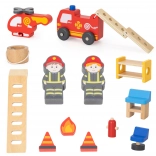 Nella confezione trovi tutto il necessario per un gioco avvincente: camion dei pompieri, elicottero con serbatoio dell’acqua, 2 personaggi pompieri, fiamma da “spegnere”, coni segnaletici, estintore e arredi (letto, tavolo, sedia). Legno di qualità, bordi levigati e colori vivaci garantiscono un gioco sicuro e duraturo.