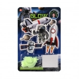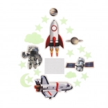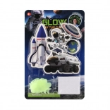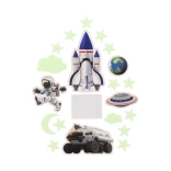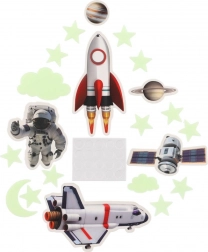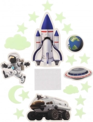 Trasforma la cameretta in una piccola galassia! Il set include stelle, pianeti e altri motivi spaziali luminosi che, dopo essere stati esposti alla luce, si illuminano al buio creando un'atmosfera magica. Ideale per i piccoli esploratori, aiuta a rilassarsi prima di dormire e rende lo spazio più accogliente.